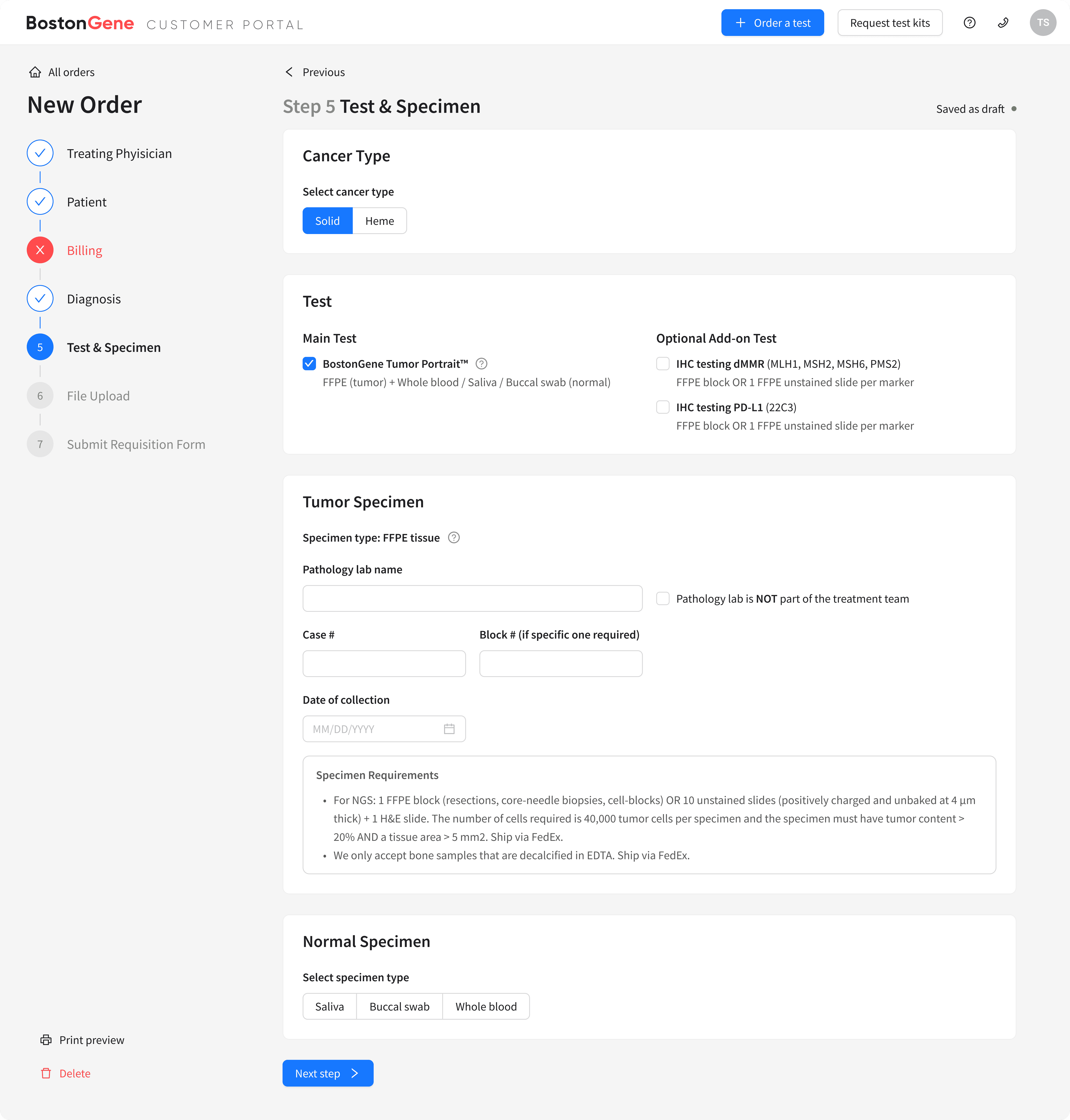 Yet, the ordering of these tests was stuck on paper. When I joined the team, I took on the challenge of turning that into a simple digital experience.